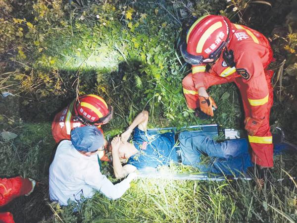 当天18时45分,消防人员到达现场,经现场侦查发现一男子倒在沟里无法动弹,不知伤到何处。救援人员做好现场警戒,待120到场后,协助医护人员进行处置。