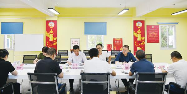 ▲市政协主席沈萌芽、副主席赵爱红在华腾新天地“委员履职活动驿站”与委员们共同学习研讨。