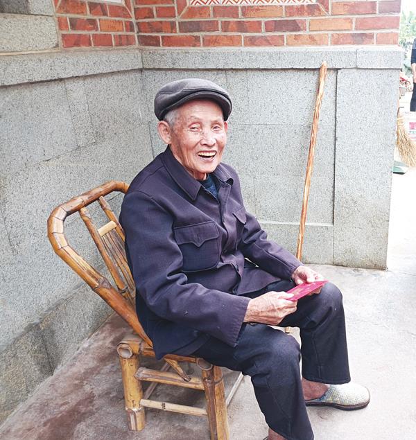 图为仙游县榜头镇仙水村老交通员陈庆金在家门口开心地接受采访。徐萍萍/摄