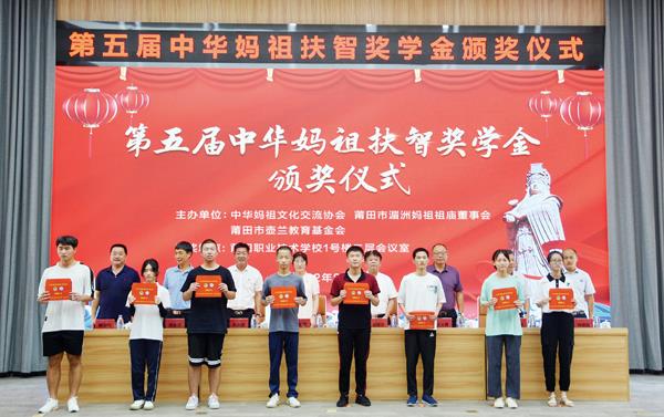 本报讯 8月24日上午,第五届中华妈祖扶智奖学金颁奖仪式在莆田职业技术学校举行,大会向莆田市(不含湄洲岛)百名2022年度高中应届毕业生代表颁发奖学金50万元。