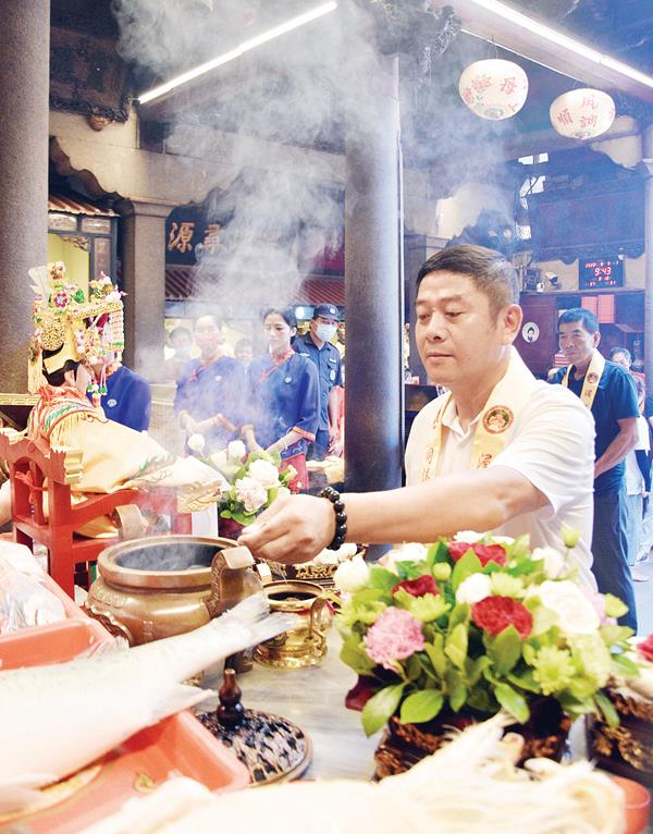 9月5日,湄洲妈祖分灵仙游县妈祖文化研究会客山妈祖宫(圣后宫)仪式在湄洲妈祖祖庙天后宫举行。湄洲妈祖祖庙董事会董事林玉美代表湄洲妈祖祖庙董事会对众人的到来表示热烈欢迎,并陪同仙游县妈祖文化研究会会长王桂聪一行举行三献礼仪式。