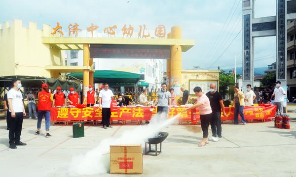 今年6月是第21个全国“安全生产月”,为深入贯彻落实习近平总书记关于安全生产重要论述,扎实推进安全生产专项整治三年行动巩固提升和进一步强化安全生产责任落实,以“遵守安全生产法、当好第一责任人”为主题,2022年6月21日上午,大济镇在大济中心幼儿园门口开展“安全生产月”宣传活动,副镇长付永辉、卢志斌带领应急办、综治办、派出所、司法、消防办、各村(社区)书记、安全员、各企业负责人等多部门联合举办了第二十一个安全生产月大型宣传活动。