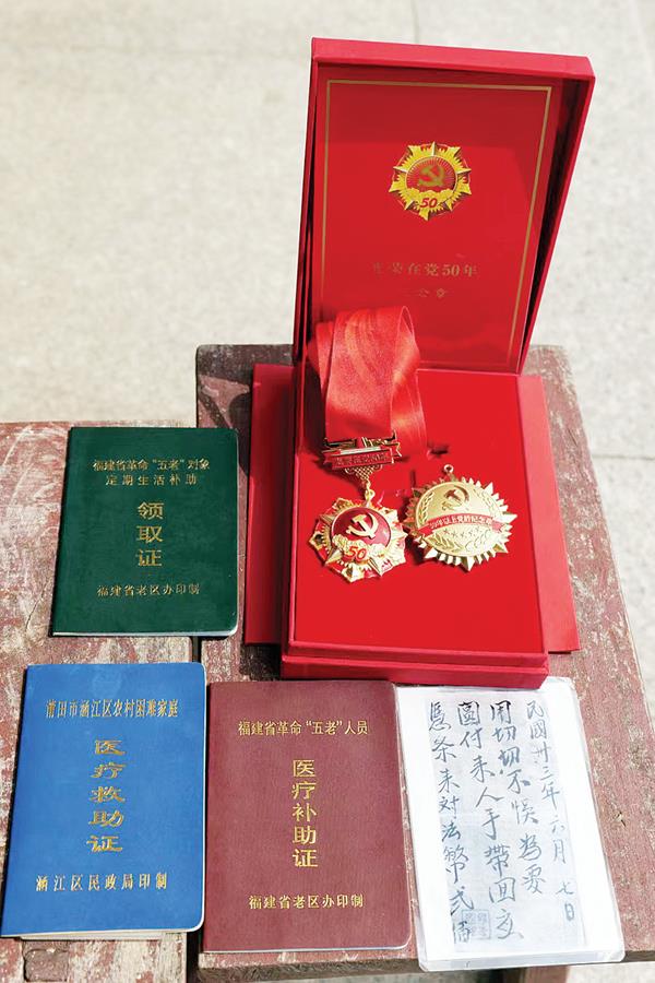 最初,误以为来客们是敬老院的人,许玉棣显得异常兴奋。当得知是莆田学院的大学生来采集红色记忆时,老人又感慨万千地回忆起那段艰苦卓绝的战斗历程。许玉棣老人12岁未满,就受父亲许道和莆田地下革命领导人张坤的影响,参加了革命,作为地下交通员经常活动在各个游击区传递信息。许老的党龄已超50年,2021年在建党100周年时获颁“光荣在党50年”纪念章。