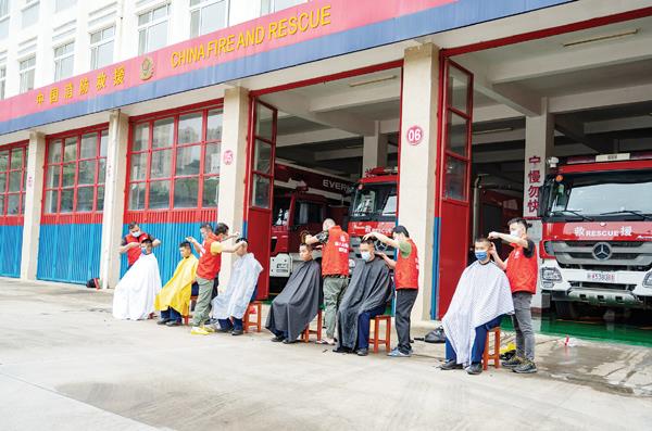 本报讯 一把剪刀,一把推子,一把梳子,一张围布……近日,莆田市聋人协会义剪志愿队来到了莆田市消防救援支队梅雪路特勤站营区,他们在营区内支起了“临时理发屋”,为23名新入职的“蓝朋友”提供义剪服务。