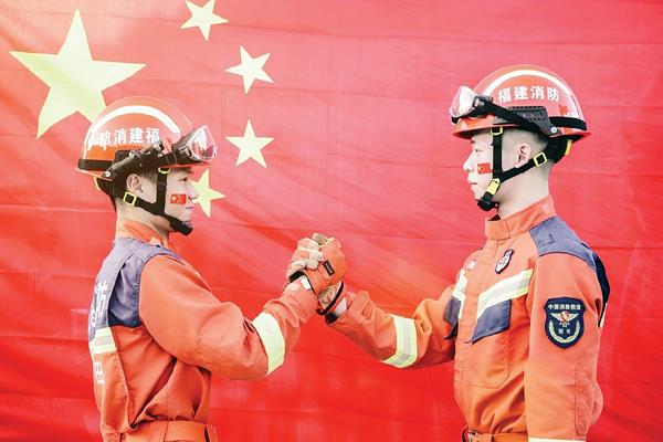 本报讯 为迎接党的二十大顺利召开,庆祝中华人民共和国成立73周年,弘扬全市消防救援人员爱国主义情操,在国庆节期间,莆田市消防救援支队组织开展“我和国旗合个影、我向祖国告白”等主题活动,以温情的方式定格每一张笑脸,晒出浓浓爱国情,表达对伟大祖国的崇高敬意和美好祝福,以饱满的热情迎接党的二十大胜利召开。 (时报记者 林锦堂 通讯员 曾宏彬)