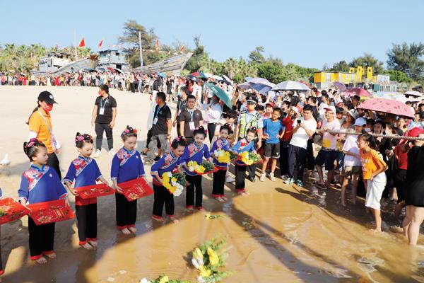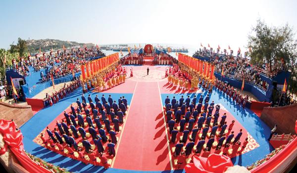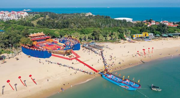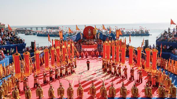 大会结束后,神圣庄严的海祭妈祖大典在海祭福船隆重上演。今年的海祭大典由国家一级编导、2008年北京奥运会开幕式导演组导演赵京生团队进行全面提升。导演组在保留海祭传统仪式环节的基础上,以妈祖文化千年传承的脉络为线索,借助舞美及现代科技手段,加强了每个环节仪式感,同时还新增了祭颂礼赞等环节。