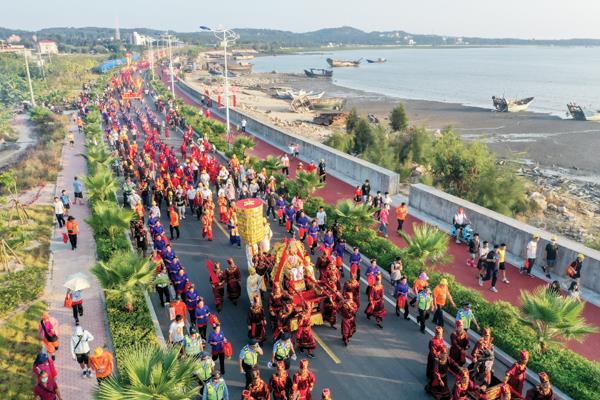 电音三太子、仪仗队、仪卫队、舞龙队、车鼓队等各具民俗特色的队伍绵延数里,巡安队伍所经之处,引得无数香客、游客驻足围观。