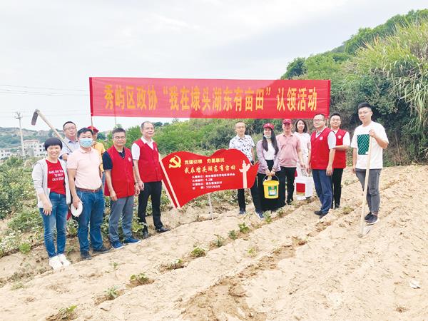 本报讯 日前,秀屿区政协机关党支部组织全体机关党员干部前往埭头镇湖东村,开展“我在乡间有亩田”主题党日活动,以实际行动庆祝农民丰收,保障粮食安全。区政协党组成员、副主席柯庆云等参加。