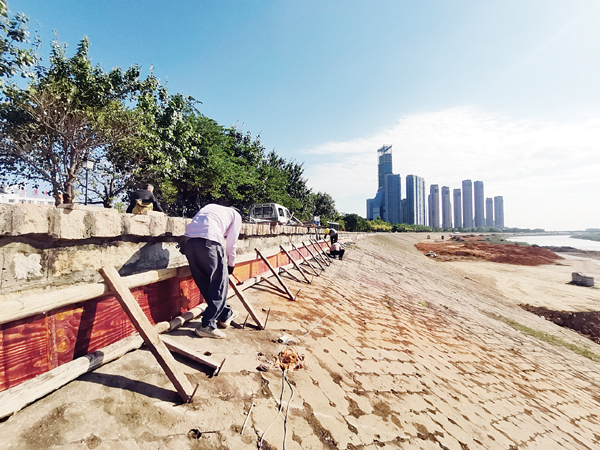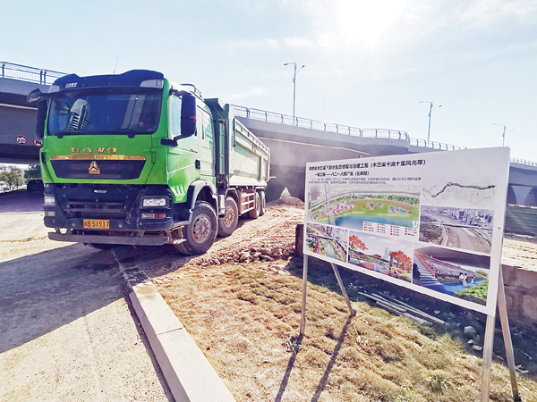 图为10月21日拍摄的木兰溪下游生态修复与治理工程(木兰溪干流十里风光带)一期工程——八二一人民广场(左岸段)施工现场。(时报记者 凌明信/摄)