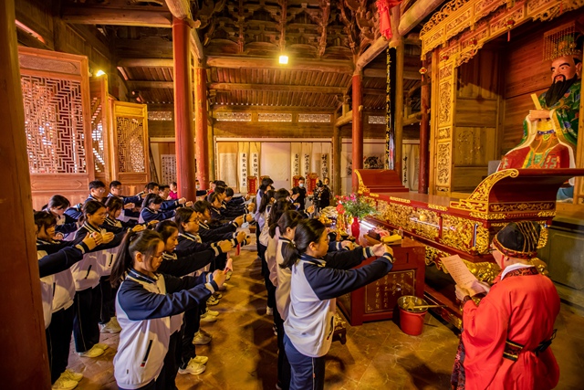此次祭典按照古制程序、传统规法执行,主祭人林文读率行三献礼,恭迎圣哲祭祀。雅乐和谐、佾舞承云,在百名观礼者注视下,仪程依序展开,参礼者用传统仪式向至圣先师孔子表达敬意,现场庄严肃穆。