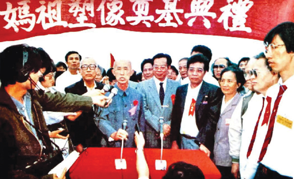 “妈祖千年祭”的重点活动有好多项,其中多数由林文豪主持,只有两项例外。第一项是西轴线正殿(俗称太子殿)重建开光典礼,是由宋老师主持,林文豪和林聪治(阿八)配合。我想这与宋老师在正殿重建筹资过程中出过大力有关。他曾通过其主编的《莆田乡讯》,联系到东南亚莆仙乡亲踊跃捐资,就连正殿大门上悬挂的“泽施四海”大匾额,也是由他联系“南洋兴安会馆天后宫”敬献的。该匾由著名书法家王元机先生书写,宋老师亲自在莆田工艺一厂督造。第二项是“妈祖石雕像奠基及小样揭幕仪式”,由宋老师主持,林文豪致辞,最后放飞一千只和平鸽。此仪式轰动海内外,其现场视频和照片在各种媒体上展示,林文豪充满激情的致辞也不断被引用,广泛传播。