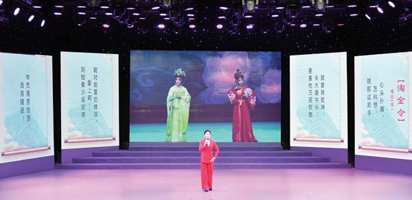 4月10日上午,在市政协首个“委员履职活动日”活动中,黄艳艳对莆仙戏传承发展提出建议。图为黄艳艳表演《淘金令》选段。