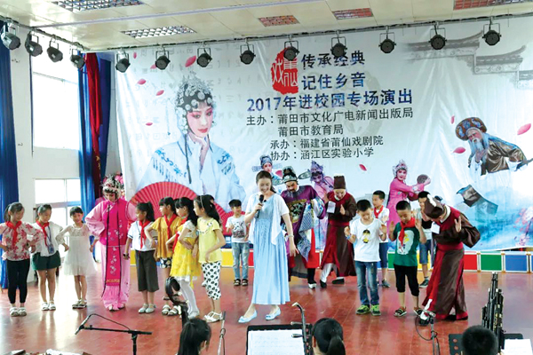 戏曲的传承创新除了要不断打造精品力作外,还要注重薪火相传、后继有人。作为基层文化工作者和非物质文化传承人,这些年来,我一直很注重“戏曲进校园”活动,深入莆田市很多中小学校,给孩子们讲述莆仙戏的历史,展示莆仙戏的艺术特色,手把手地带领他们学习莆仙戏科介表演,培养出不少出色的小演员。今年,在中国剧协主办的第26届“中国少儿戏曲小梅花荟萃”中,我指导的莆田市实验小学的小演员陈韶涵和翁馨,演绎了《踏伞行》中踏伞一折,喜摘少儿戏曲个人项目“小梅花”奖项,在全市中小学掀起了“莆仙戏热”。我想,这就是传承,并不是所有的孩子日后都会从事莆仙戏创作表演,但千年戏曲的种子,已在孩子们心中悄然播撒,增强了他们的文化自信。