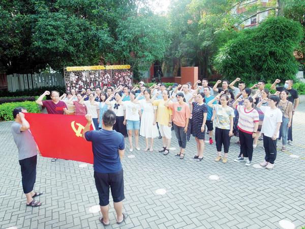 本报讯 同心庆七一,永远跟党走。为庆祝中国共产党成立101周年,喜迎党的二十大召开,日前,莆田锦江中学党支部以“同心庆七一,喜迎二十大”为主题开展党日活动,汲取红色力量,赓续精神血脉,营造了爱党爱国爱社会主义的浓厚氛围。