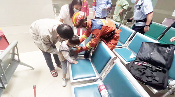 本报讯 日前,仙游县妇幼医院有一名幼童左脚卡在座椅的空隙里,无法移出。接警后,仙游消防救援大队立即派出城关消防站1部消防车6名指战员前往处置。