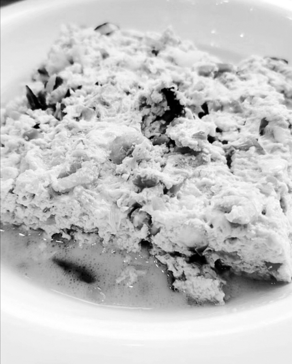 “焖豆腐”是莆田民间筵席必备的一道菜。“焖豆腐”的主料食材是豆腐,配有虾仁干、香菇、鸡蛋、海蛎、五花肉、蛏干、花生等佐料,焖煮起锅,香鲜嫩滑,美味诱人。“焖豆腐”在喜庆酒宴上,寓意着幸福团圆,吉祥顺利。