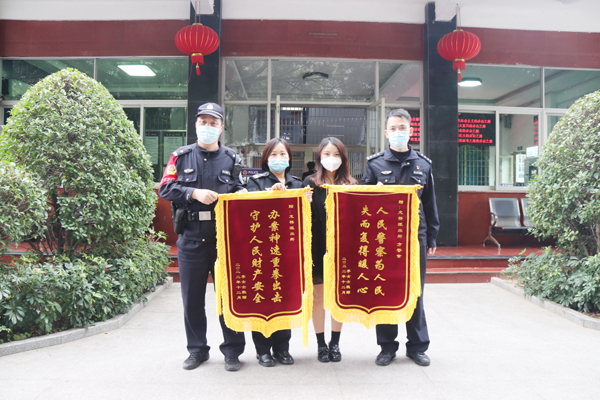 近日,辖区群众李女士将两面印有“人民警察为人民 失而复得暖人心”、“办案神速重拳出击 守护人民财产安全”的锦旗和一封感谢信送到龙桥派出所办案民警、巡防民警和监控查找手手中,感谢各警种相互配合帮其找回遗失的手机。