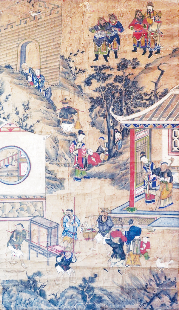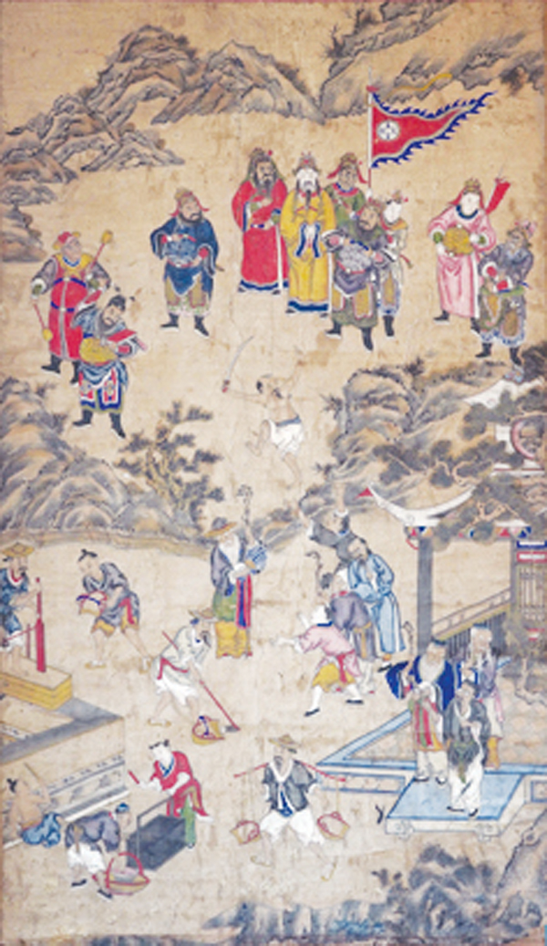 活动现场展出了百年古画真品,即1幅明代《五帝降銮图》和4幅清代《五帝显圣图轴》,供广大师生品赏。讲解员王元凤用自己的语言,结合画中的人物、景象和细节,生动讲解了明清时期东进村抗倭建寨的历史文化典故和闽台送王船的习俗故事,展示了明清时期东进村的文化生活、民俗、交通和建筑,使在场的学生对家乡历史有了更加深入和深刻的了解。