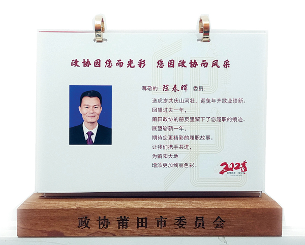 据了解,为委员制作个人日历,这是八届市政协的创新之举,目的是激发委员的个人荣誉感,增强委员的责任感和使命感。“这份满满的感动,亦是一份沉甸甸的责任。”市政协常委刘敏表示,将充分发挥妇联界别在参与社会发展、家庭文明创建、维护妇女权益等方面的独特作用,如通过“委员履职活动日”等特色活动和“委员履职活动驿站”等创新平台,组织女委员们踊跃发声,引领广大妇女群众感党恩听党话跟党走,把个人理想、家庭幸福、事业发展与莆田发展结合起来,在建功新时代中激扬巾帼之智、彰显巾帼之美、凝聚巾帼之力。