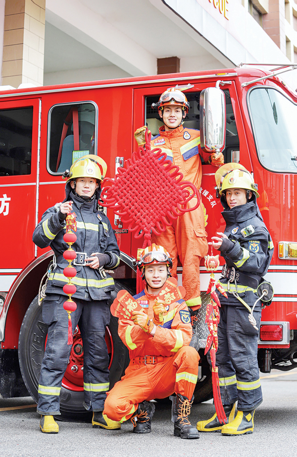 本报讯 一张张洋溢着喜气的窗花,一副副翰墨飘香的新春对联,为传统春节增添了浓浓氛围。春节前夕,涵江区国欢消防救援站暖意融融,充满欢乐的新年气息,消防指战员们通过写春联、贴窗花、挂灯笼和新春创意祝福合影等多种形式,精心对营区进行“梳妆打扮”以喜庆、传统的迎新方式表达对新春的祝福,也让全体坚守岗位的消防指战员们感受浓浓的年味。 (时报记者 林锦堂 通讯员 曾宏彬)