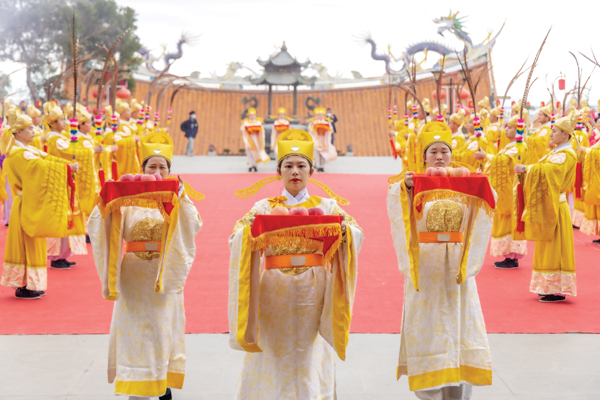 上午8时30分,海峡两岸新春祈年典礼正式开始。依照湄洲岛民间祈年礼俗,祭天仪式有序开始。