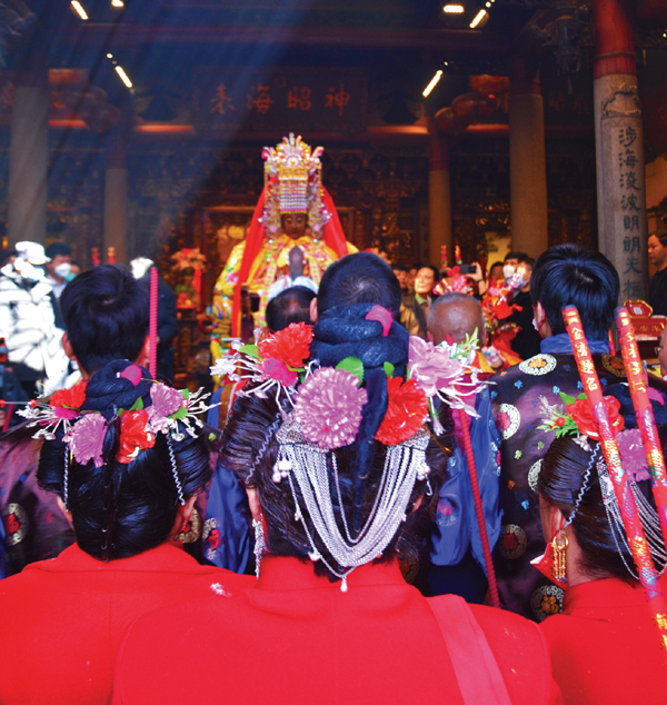 上午10时许,上林宫护送妈祖金身抵达祖庙天后宫,上英宫紧随其后恭请上英宫妈祖抵达祖庙,等候妈祖金身洗尘换装。
