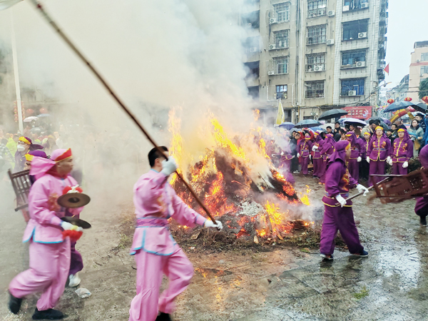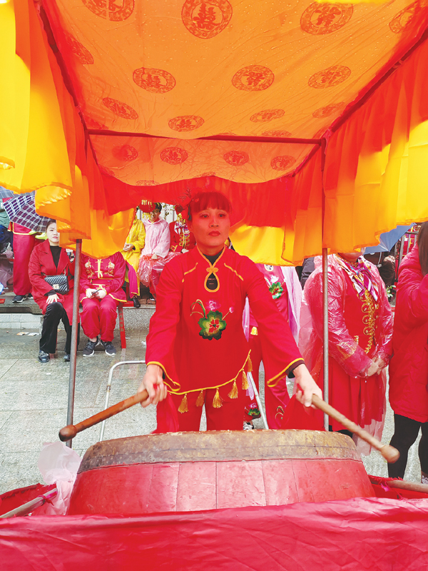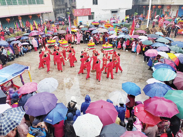 莆田元宵民俗文化内容丰富,有游灯、摆棕轿、爬刀梯、打铁花、打铁球、皂隶舞、红盘出游、点烛山等形态各异的民俗表演,可谓是“十里不同风,一村一习俗”。农历正月十五,记者慕名前往城厢区南门社区观看摆棕轿表演。