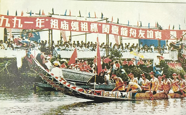 1991年夏天,莆田市举办“祖庙妈祖杯”闽台龙舟友谊赛,邀请台北莆仙会馆天后宫组团参赛。我当时是工作人员,参与接待。这是我第二次接触到“台北莆仙会馆”。记得当时代表台北莆仙会馆天后宫参赛的团队共20多人,领队是台北莆仙同乡会总干事。此次龙舟友谊赛共有闽台两地16支代表队参赛,队员达400多人。其中3队来自台湾妈祖分灵宫庙,分别是台北莆仙会馆天后宫、北港朝天宫和高雄莆仙会馆天后宫。