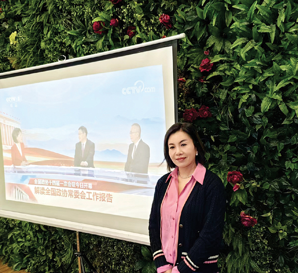 市政协常委、莆田市华腾新天地贸易有限公司总经理黄兆琼说,收听收看了全国政协十四届一次会议开幕会直播,听了全国政协常委会工作报告,我感触很深。政协组织在中国共产党的领导下,积极助力我国经济社会事业发展,彰显政协担当,展现政协作为,贡献政协力量。作为一名市政协常委、华腾新天地“委员履职活动驿站”的负责人,在这新的春天、新的征程、新的起点上,我将发挥驿站联系界别群众的作用,及时将会议精神传达好、贯彻好、落实好,并找准发展定位,认真履行委员职责,广泛收集社情民意信息,开展基层微协商,切实为群众办实事。同时,作为女企业家协会常务副会长,我将以更加强烈的责任心和紧迫感、以更加高昂的工作热情投入到协会和企业发展中,带领协会会员深入学习贯彻全国两会精神,将自身工作与会议精神高度契合,紧扣党和国家的中心工作,勇于担当社会责任,并投身公益事业,以实际行动为莆田加快建设绿色高质量发展先行市作出新的贡献。