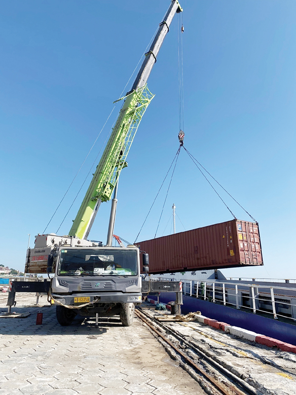 本报讯 3月10日晚上8时许,载运5个跨境货物集装箱的“辑薪”轮在莆田海事局秀屿港海事处执法人员的安全保障下,缓缓驶离莆田秀屿港区秀屿作业区4#泊位。