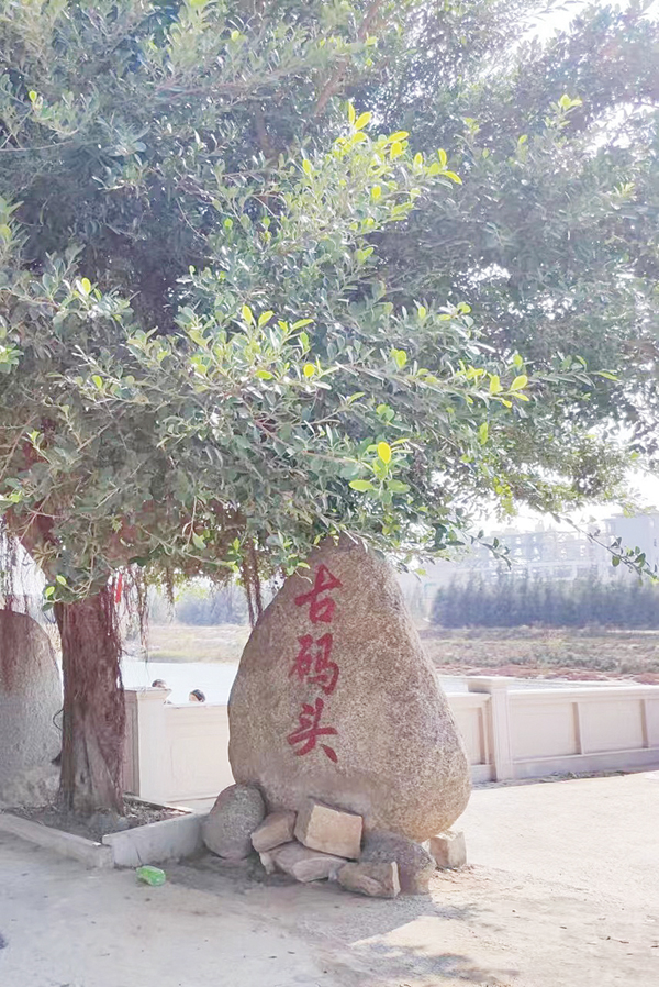 说是河流,实是海路,路名“启航”。路上流淌的是海水,路上走的是海船,一座重修的古码头,就在文化园区大榕树旁海路边。