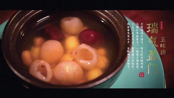 当晚,雅集分《山水序》《尤见初心》《愉见其乐》《凝香归一》《水天一色》《和》六个篇章,以餐前水果《碧玉金丸》(枇杷)“润喉”,以餐前小碟《六合顺意》(紫菜、炸豆腐、套肠、白切羊肉、土笋冻、小虾米)“开胃”,品味“十二道莆阳名菜”《华盖如意》(红茹章鱼汤)、《邹鲁余香》(通印子鱼肥)、《大方无隅》(焖豆腐)、《福鲍平安》(南日鲍)、《千帆鸣阳》(香螺)、《桑梓丹荔》(古法荔枝肉)、《久洁清风》(九节虾)、《平安吉庆》(妈祖面)、《莺歌燕舞》(扁食汤)、《绿野平畴》(炒芥兰)、《蒸蒸日上》(红团)、《瑞气盈门》(五味汤),最后以一杯清茶《和悦仙芽》圆满。