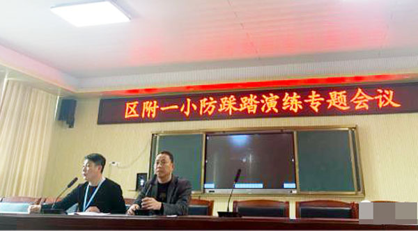 演练活动前,林校长组织召开紧急安全会议。会上,林校长带领各班班主任及任课教师认真学习了演练方案,并对各组人员提出安全要求。会后,班主任召开防踩踏主题班会,以保障整个演练过程有序进行,各个环节确保安全。