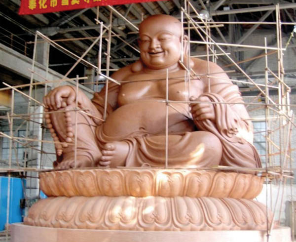 由于其技艺精妙,佛像惟妙惟肖,精美绝伦,栩栩如生,传神壮观。行家赞其既具有艺术价值,又富有中华优秀传统文化精神内涵。如其制作笑眯眯、乐哈哈的大肚弥勒佛活灵活现呈显:“大肚能容,容天容地,于人何所不容;开口便笑,笑古笑今,凡事付之一笑。”意味无穷,发人深思,启人为善,让人笑花常开,青春常在。故多受中外方家和有识之士褒奖。