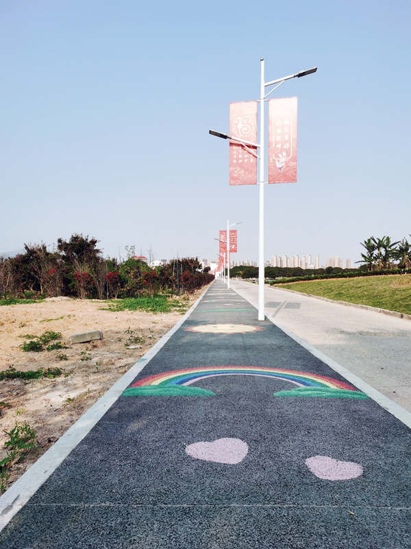 从航拍图上看,位于莆田荔林水乡“城市绿心”核心区的吴江村,地貌形似一颗心脏。在春潮涌动的季节,站在进入吴江村的路口,猜想着脚下的方位是左心房右心房,还是左心室右心室?只是强烈地感觉到,木兰溪最大的支流延寿溪,其下游穿村而过的吴江沟和其他众多的沟渠,便是“城市绿心”的血脉。春雨柔润,润物无声,润心含情,看到那随处可见的绿水,就能感受到一种心跳;而那浩荡的春风,就像这颗心脏的翅膀,带着它在荔林水乡飞翔,播撒着爱心的根系,也播撒着爱情的种子!所以,我们看到了这样的宣传语:“吴江——寻爱的地方”“吴江——为爱而来”。这不,吴江村新建的花海木栈道,既是休闲步行道,也是观景台——栈道的一侧是青青菜园和新引进的低矮荔枝树林;另一侧是荷塘,莲花的叶子飘浮在春天的水面上,像是凝在水面上的一个个翠绿碧透的小小盘子,这一切都淋漓尽致地凸显着水乡那种柔柔的、润润的、质朴的清新淡雅。栈道的附近,是宽畅平直的延寿溪;而远处,壶公山连接宇寰。渠田相连,平畴如织;一条安澜,安然眸底,莆阳山水诗画生态韵城就在眼前,在吴江这个“城市绿心”宜居环境试点村,望得见山,看得见水,记得住乡愁。爱是春天跳动的嫩绿,由此起笔,越来越多的蓝天碧水白云交集成富有爱意的三棱镜。