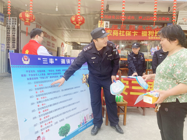 “大爷,您知道平安三率吗?平安三率就是群众安全感率、扫黑除恶好评率、执法工作满意率......”。4月17日上午,龙华派出所联合龙华镇综治办、网格化中心、交警龙华中队及农商银行持续开展平安“三率”集中宣传活动。