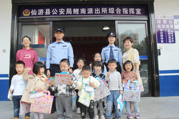 本报讯 为进一步让小朋友们了解警察的角色和工作内容,4月27日下午鲤南派出所组织辖区幼儿园小朋友们到所进行“萌娃进警营”参观实践活动。