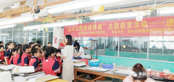学校以世界读书日为契机,向全校师生发出“读红色经典”倡议书,用红色浸润心灵;结合“全国中小学生电影周”活动,组织学生观看红色影视,了解名族历史,激发学生的爱国热情;通过“讲红色故事”的活动,切实加强革命传统教育。学校还结合五一劳动周,在老师的带领下让学生走进工厂,亲身体验生产过程,同时还组织学生走进农村的田间地头,从小培育学生的劳动精神。