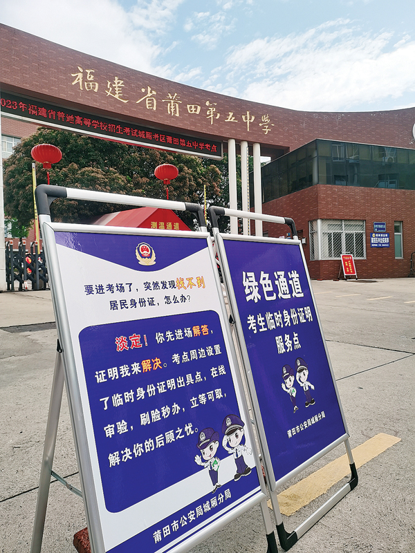 三载砥砺笔为剑,高歌壮行待凯旋。6月7日,2023年全国普通高考正式拉开帷幕,今年我市共有2.4万多名考生参加高考,全市设立了6个考区,21个考点,933个考场。记者在市区部分考场外走访时看到,高考首日,不少陪考的家长,或穿上红色衣服,或身着旗袍等寓意“开门红”、“旗开得胜”,为考场内的孩子加油鼓气。在各考场外,不少爱心商家、企业和单位也纷纷搭起帐篷,建起临时“爱心驿站”,为考生及送考家长免费提供饮用水、扇子。记者在莆田一中考场外看到,部分“爱心驿站”还贴心地为考生提供尺子、考试笔以及藿香正气水、清凉油等。同时,公安、交警、志愿者等冒着高温酷暑,坚守岗位,各司其职,为学子加油,为梦想护航。