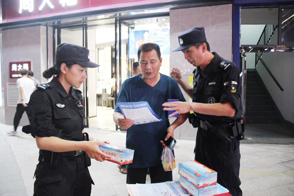强化宣传引导,筑牢安全防线。夏季治安打击整治行动开展以来,大队通过兰溪洪桥警务站滚动播放LED、无人机空中播报、发传单等方式,迅速掀起宣传新高潮,营造浓厚宣传氛围。行动期间,民警深入人员密集场所,以群众“看得见、容易懂、记得住”的方式开展预防电信诈骗、禁毒、拒黄赌等安全知识宣传,不断增强宣传防范的广度和深度,力求宣防一体,做群众的平安守护者。(郑晴)