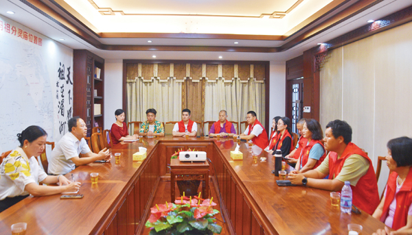 7月12日上午,湄洲妈祖祖庙董事会董事长林金赞、秘书长李少霞与丁秀云一行在祖庙董事楼举行座谈会。