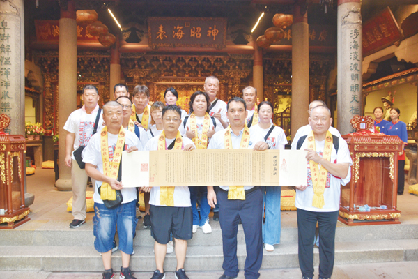 7月18日下午,台湾高雄林园区圣妃宫主委龚扬智一行10余人赴湄洲妈祖祖庙谒祖进香。