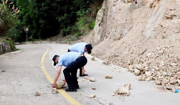 “前方路段发现滚石!” 常太派出所民警辅警在巡查中及时发现并清除路面上的滚石,同时对山体滑坡的位置牵拉警戒线。针对此次台风可能将对辖区山区造成影响,常太派出所民警辅警活跃在山体一带,大家轮流值班,加强巡逻防控,并对辖区施工路面进行安全隐患排查,确保过往行人以及车辆的安全。