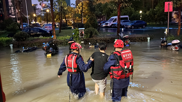 本报讯 7月28日,荔城区消防救援大队接到报警称:辖区拱辰街道海源酒店立交桥下车辆被淹,有人员被困,需要救助。赶到现场后发现,一辆白色轿车和一辆小货车抛锚在涉水路段,由于台风影响,风力较大,消防员做好保护后涉水到达车边,对3名被困群众进行转移,将被困人员成功将转移至安全地带。(时报记者 林锦堂 通讯员 陈斌)