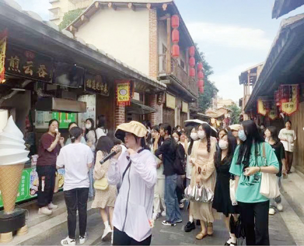 随后,师生们来到了兴化府历史文化街区,该街区是莆田历史文化名城的核心组成部分,内有街巷格局保存完好的6条古街,明、清古建筑连成一片,是留存城市记忆、展示莆阳人文民俗的特色载体,也是推进文旅融合创新发展的宝贵资源。许一全同学说:“游古街、品美食、赏民俗,在兴化府历史文化街区‘非遗一条街’沉浸式的互动体验中,我感受到了非遗之美,领略到了莆阳文化的独特魅力。”