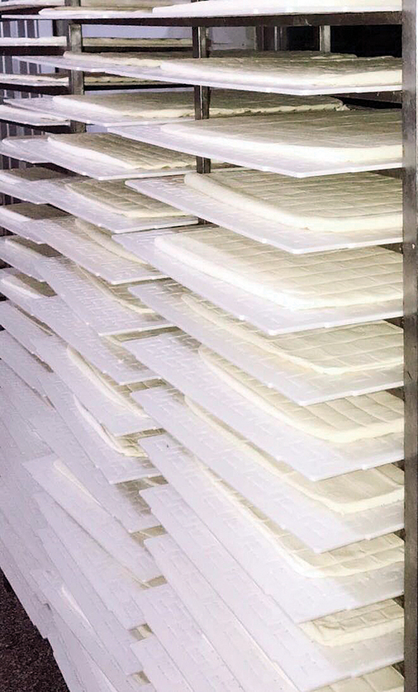 打小耳濡目染,林开发于1992年开始在泉州从事豆腐生意,直到2009年把生意摊子搬回莆田老家,并于几年前成立了自己的豆制品公司。公司的名称中有“蒲豆”两字,其实就是莆田人见人爱的咸豆腐,而且“蒲豆”是普通话“豆腐”的莆田方言。这个听得亲切的地方腔,夹裹着浓浓的乡情乡味。