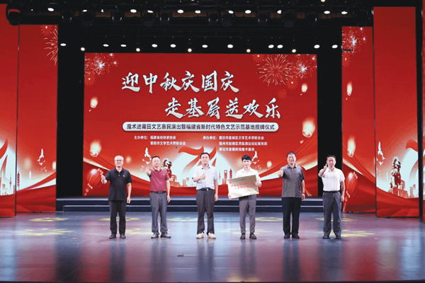 本报讯 9月23日,“迎中秋庆国庆 走基层送欢乐”——魔术进莆田文艺惠民演出活动在莆田市青少年宫梦想剧场举行。现场举行“福建省新时代特色文艺示范基地”——莆田市喜番剧场魔术基地授牌仪式。