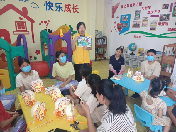 活动开始,引航社工用浅显易懂的语言介绍了中秋的传统习俗,带领儿童制作中秋花灯,一个个造型各异、憨态可掬的兔子花灯,让小朋友脸上露出了灿烂的笑容,也让他们感受到了浓浓的传统节日氛围。