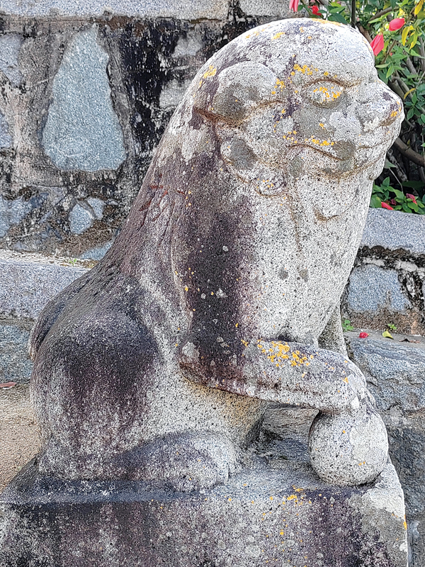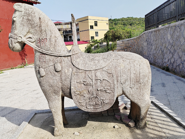 卓迈墓旁尚存的石马,呈直立状,其身躯壮实,眼睛有神,略低看前方,马鞍雕刻如真,马鞍下左右两侧的“障泥”浮雕崇山和如意卷云纹,镫及镫带雕刻线条流畅有力,不失为石雕艺术精品。