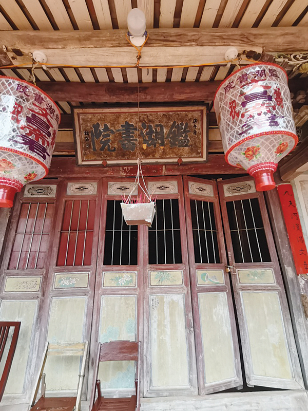 沿着红砖瓦的广场往前,便是双福村赫赫有名的“鉴湖书院”,在书院的两厢,一边悬“文明肇啓”额,一边为“武圣殿”。双福郭氏早在元明时,就在双福村下店墩创建了“文昌书院”,是古时郭氏子孙读书学习的地方。清朝乾隆时,村里人把“文昌书院”移至双福村沟尾,并在书院前挖掘一口池塘,形似聚宝盆,寓意人才如水般涌现,村里人还为池塘取名为“鉴湖”,迁移至湖畔的“文昌书院”,也易名为“鉴湖书院”。书院奉祀文昌帝君、魁斗等文神。池塘就是一泓湖水,是双福村人眼中的“聚宝盆”,记得同位于白塘镇的洋尾村李富祠前,也有一条白塘湖的支汊,其状如鲤鱼。荔林水乡的美,总是绕不开水,它是这里的灵气,亦是这里的魂,无论是李富祠前的那条“鲤鱼湖”,还是双福“鉴湖书院”前的“聚宝盆”,抑或荔林水乡间的其他学堂、书社、书院、祠堂,不绝于耳的朗读声音,曾唤醒了这里的每一个清晨,写下了“十室九书堂,龙门半天下”的莆阳科举奇迹!“水绕鉴湖弦,吉水出状元”,这是江西吉水的古谣谚,在古代科考中,吉水是出了名的多进士之地,想到这儿,就不难猜出当年双福郭氏把“文昌书院”易名为“鉴湖书院”的深刻内涵。这是莆阳士子的骨气、底气、雅气,自然也是莆田先贤留给我们的精神遗训,从而构筑了“文献名邦”博大精深的文明鸿基!